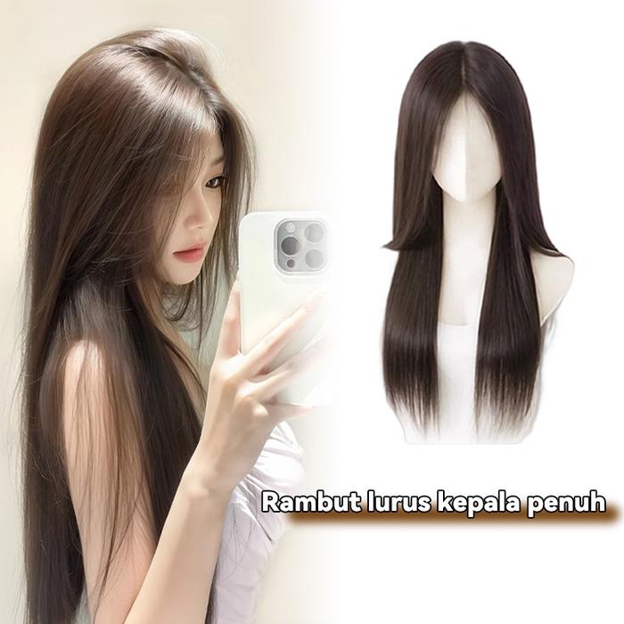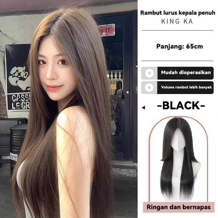 Full Wig Korean Long Straight Tanpa Poni Rambut Palsu Wanita Lurus Natural Wig Wanita 65 cm - BLACK