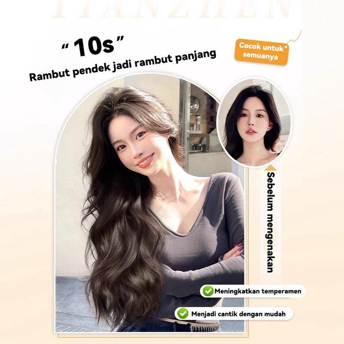 Hair clip Filamen Protein Korean Wave Ombak Rambut Palsu Wanita Curly Wig Wanita hairclip60cm/50cm - ombak black 60cm