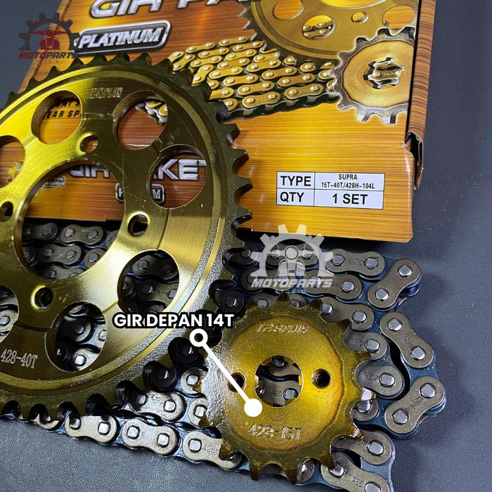 GEAR GIR SET GIR PAKET SUPRA FIT LAMA SUPRA X 100 ASTREA GRAND LEGENDA 15 40T 428H Gold Motorcycle - Spesifikasi