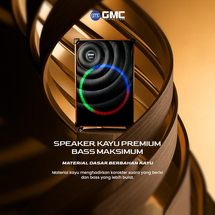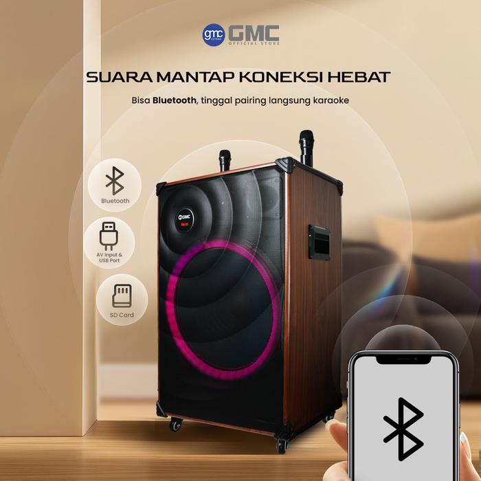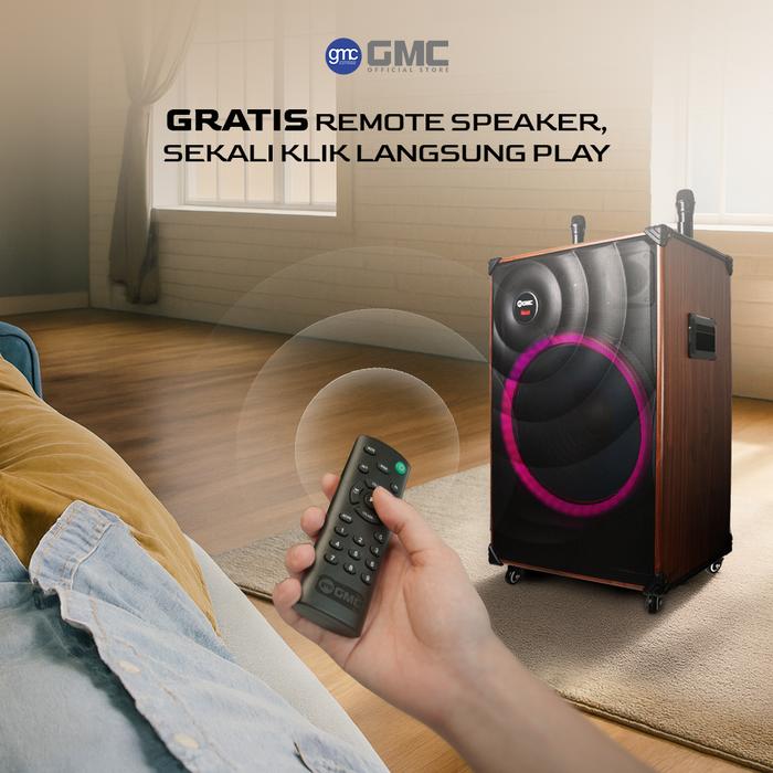 GMC Speaker 883J Speaker Karaoke Bluetooth 18 195W, Termasuk 2 Mic Wireless, Lampu LED, USB, AUX, TF