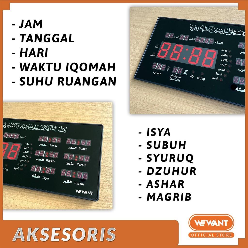 WEWANT Jam Dinding Jadwal Sholat LED Suara Adzan Masjid Otomatis Digital
