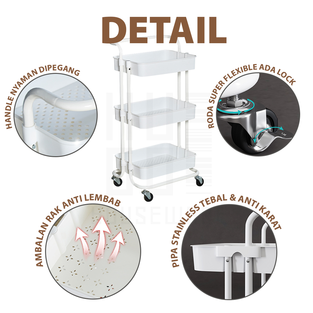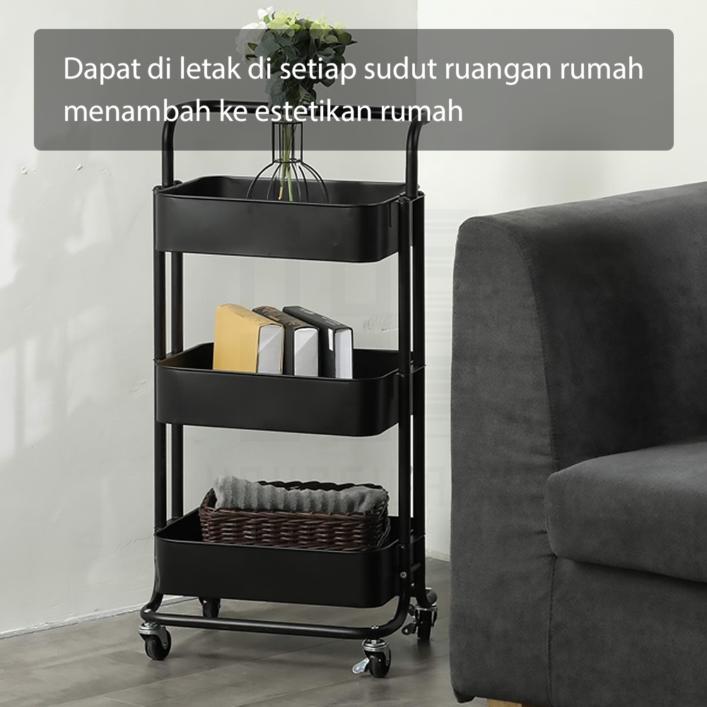 HUGO Rak Dapur Dorong Besi Stainless Steel Rak Troli Susun Serbaguna dengan Roda dan Pegangan