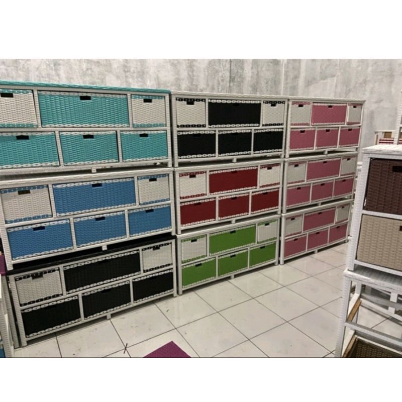 (Ready Stok) Lemari Rotan Sintetis 6 Laci Lemari Plastik Rak Buku Susun Meja Tv Minimalis Rotan Murah