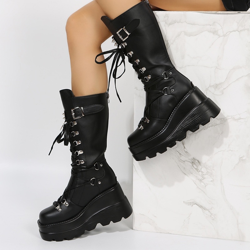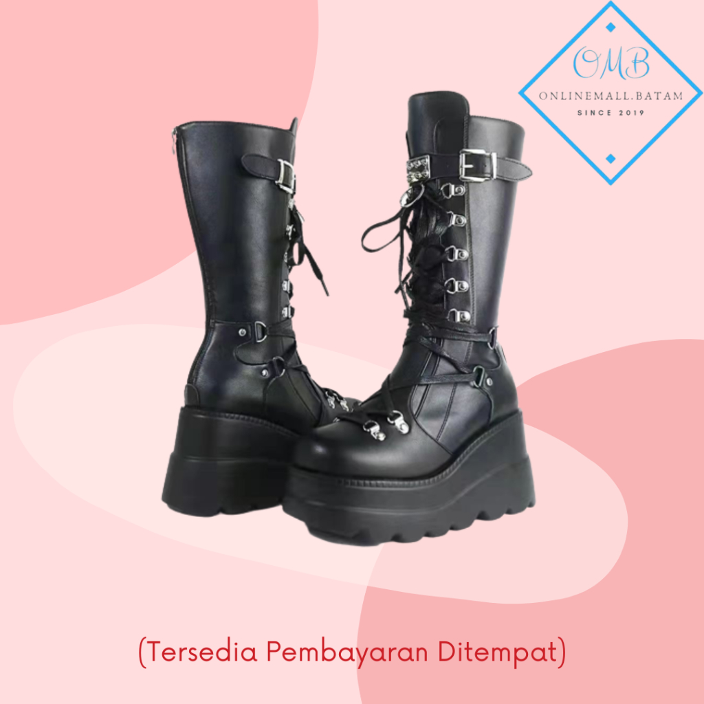 Sepatu Boots chunky Panjang Wanita Hak Tinggi Fashion 291 onlinemall