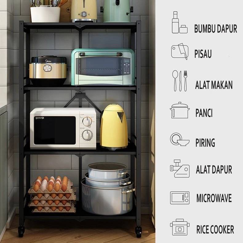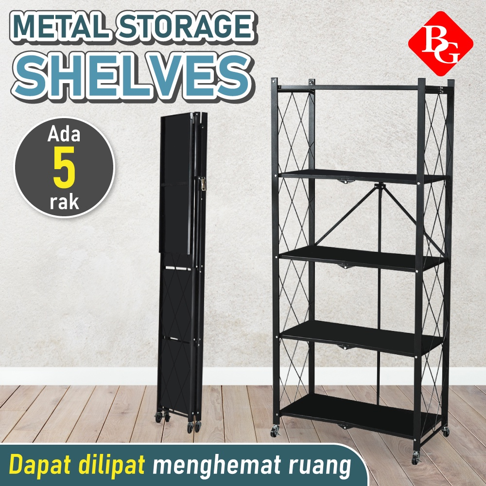 BG SPORT Metal Storage MultiFungsi Tanpa Instalasi Rak Penyimpanan Rak Lipat Rak Dapur 5 Tingkatan