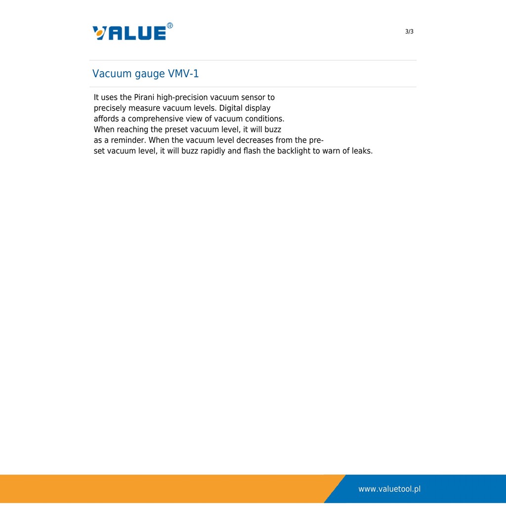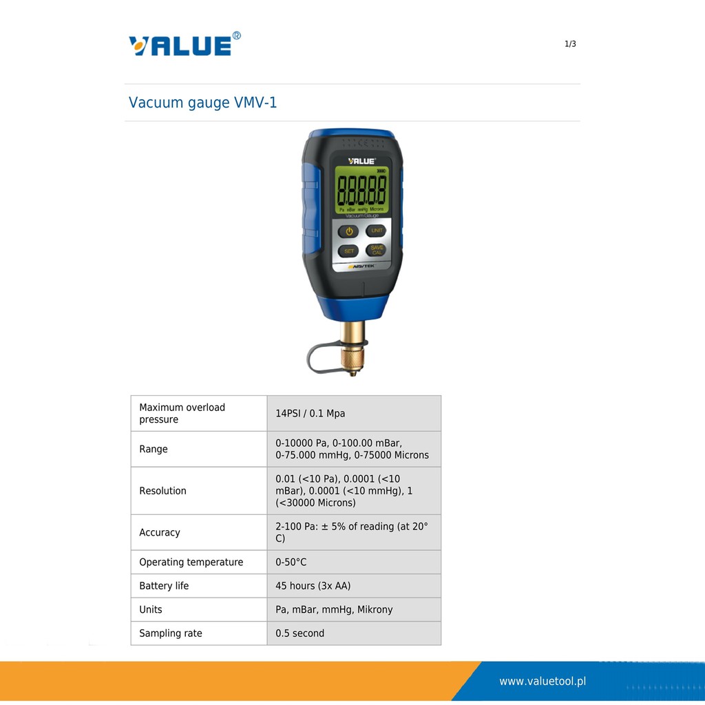 VACUUM PUMP DIGITAL GAUGE VALUE VMV-1