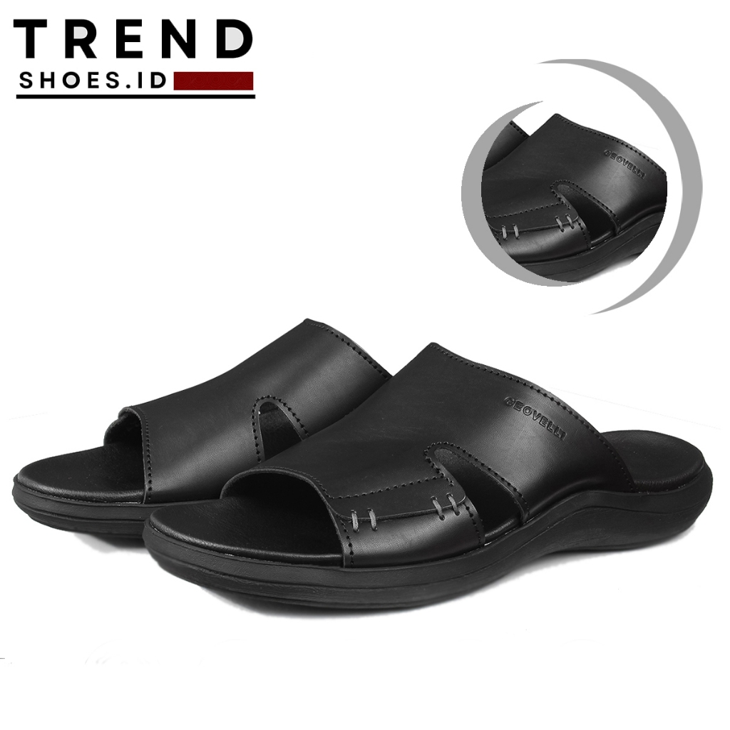 Sendal Pria Slide Hitam Kekinian Model Geovelli Sendal Slide Cowok Kulit Kualitas Import Premium