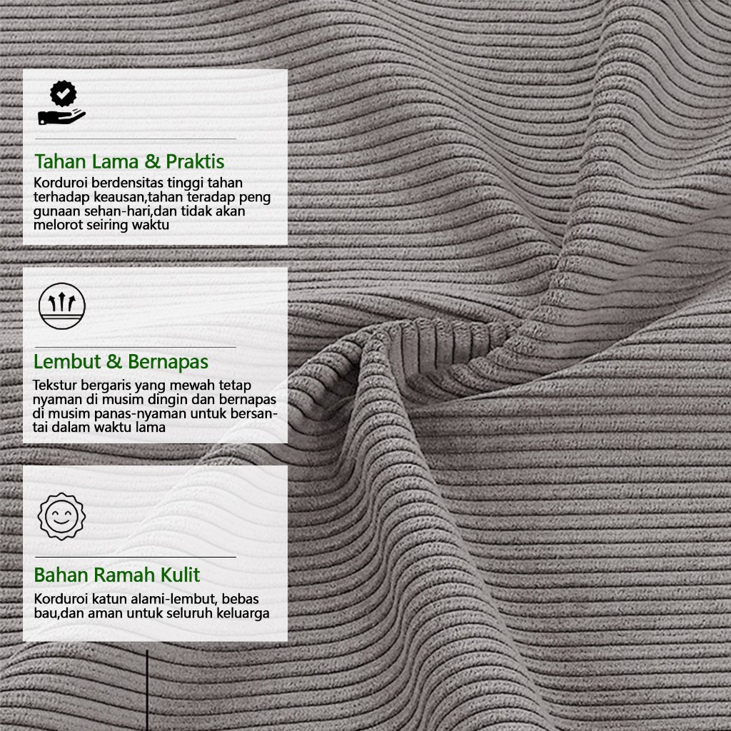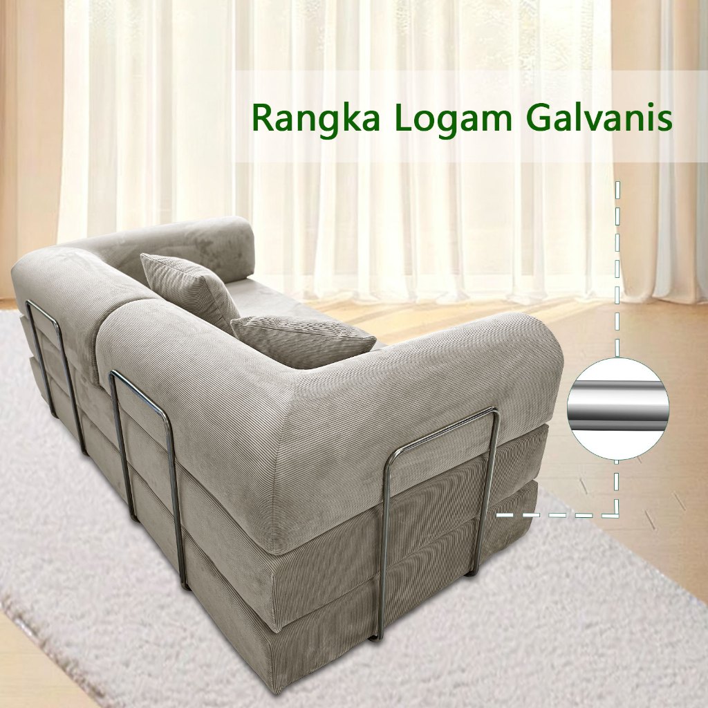 Sofa Ruang Tamu Lipat Minimalis 3 Kursi Bahan Vacuum Anti Bau, Rangka Kuat & Sandaran Bisa Dilepas Sofa Bed Hijau