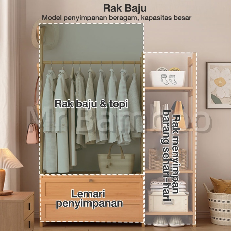 Serbaguna Stand Hanger Kayu Rak /Minimalis Kapasitas Tinggi/Rak Gantungan Baju/Garansi Panjang