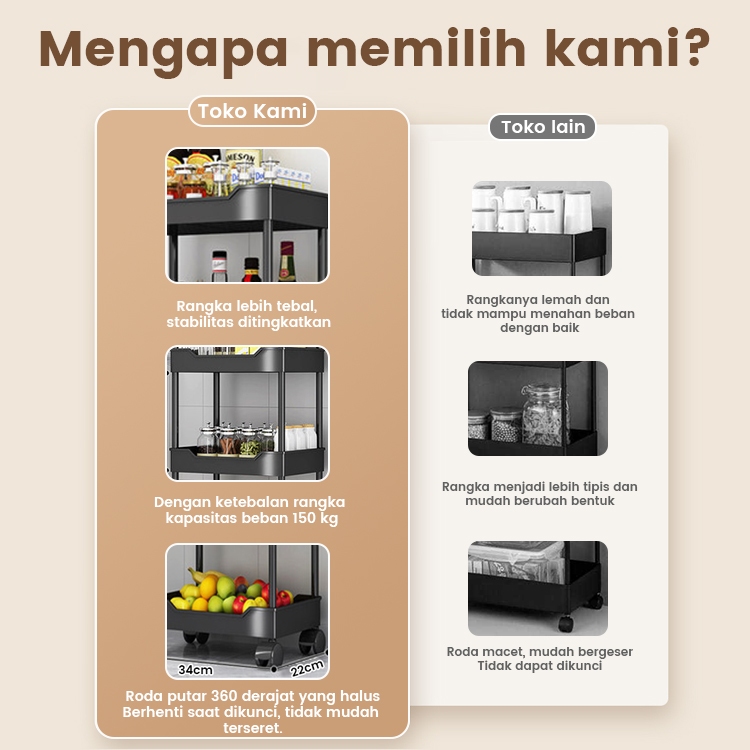 SAKULA Rak Dapur 4 Susun Rak Troli Serbaguna Rak Persegi Rak Segitiga