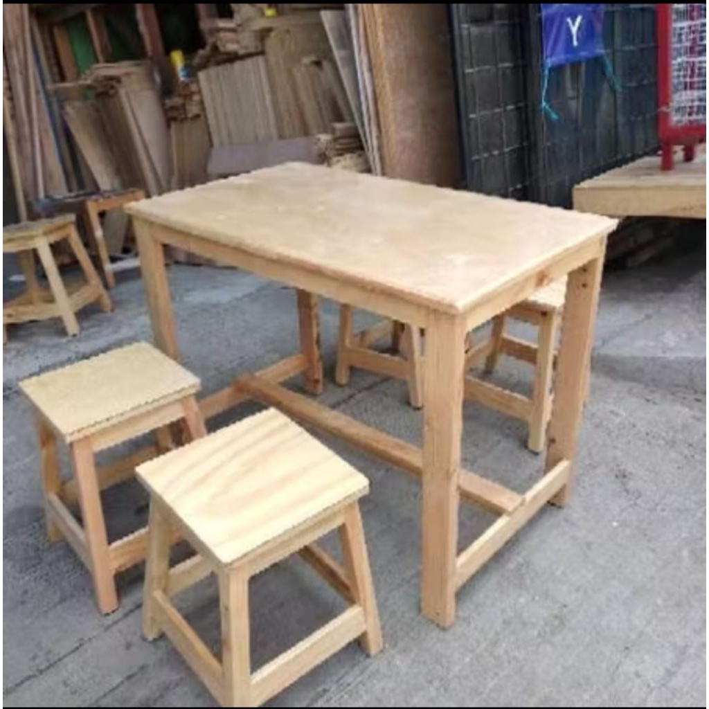 1 Set Kursi & Meja Makan Kayu Meja Cafe Mentah Kayu Mahoni