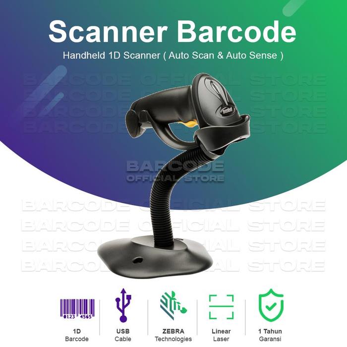 Zebra LS-2208 Barcode Scanner Motorola Symbol Zebra Auto Scan + Stand Original dengan Garansi 1