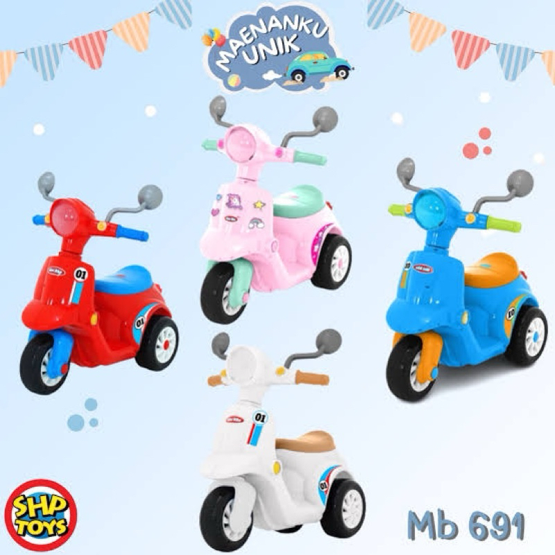(FREE ONGKIR) TERMURAH MB-691 - Mainan Anak Mini Bike 691 SHP TOYS - Maenan Motoran Scooter - Merah Vespa mini mainan tunggang musik melodi