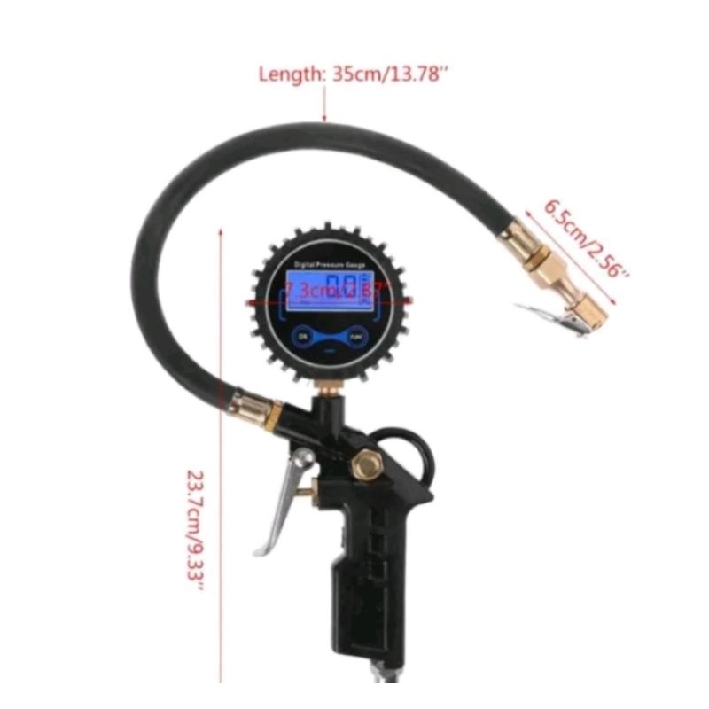 Digital LCD Tire Inflator Pressure Gun Alat Pengisi Pengukur Ukur Tekanan Angin Ban