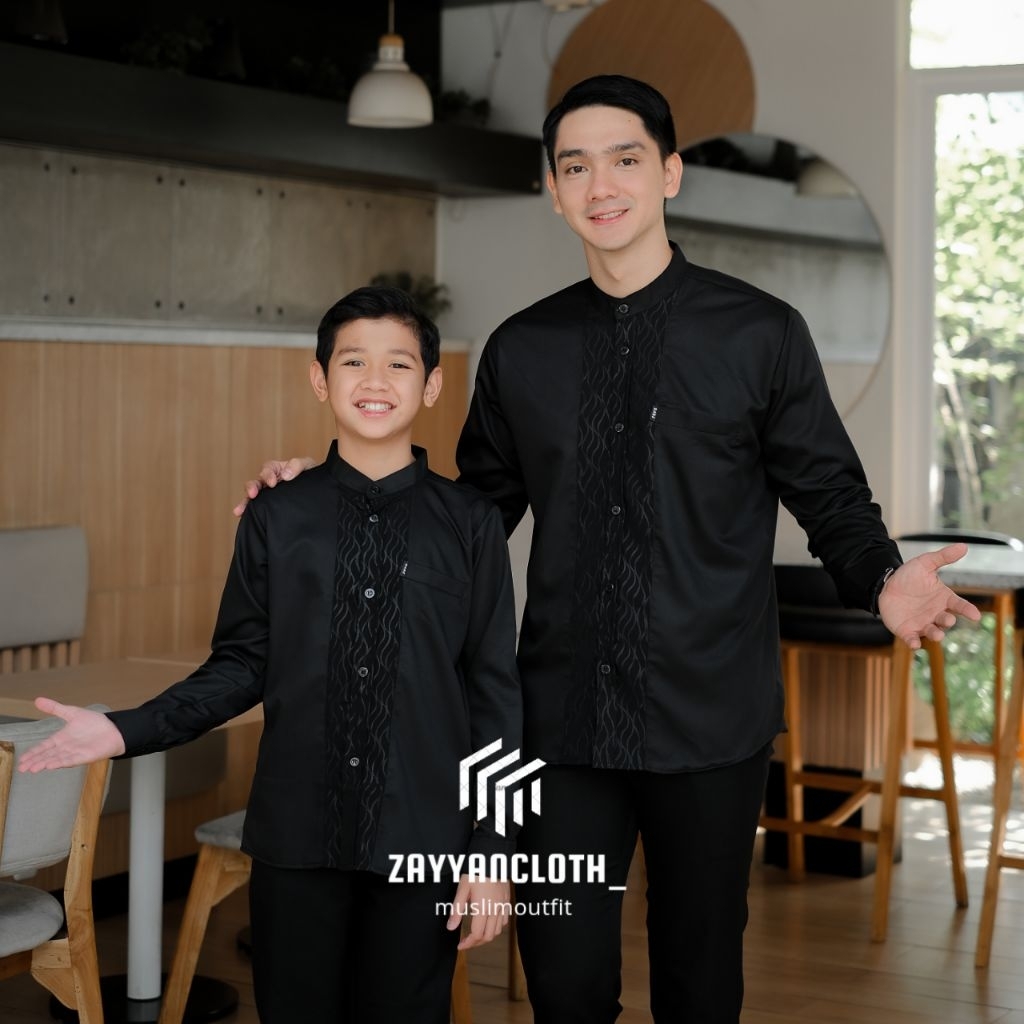 Baju Koko Couple Ayah dan Anak Lengan Panjang Bahan Toyobo Premium Kombinasi Embos