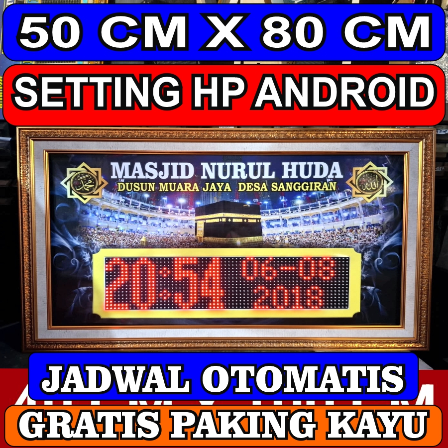 jam sholat digital masjid waktu adzan 50 CM X 80 CM p7 setting wifi hp android