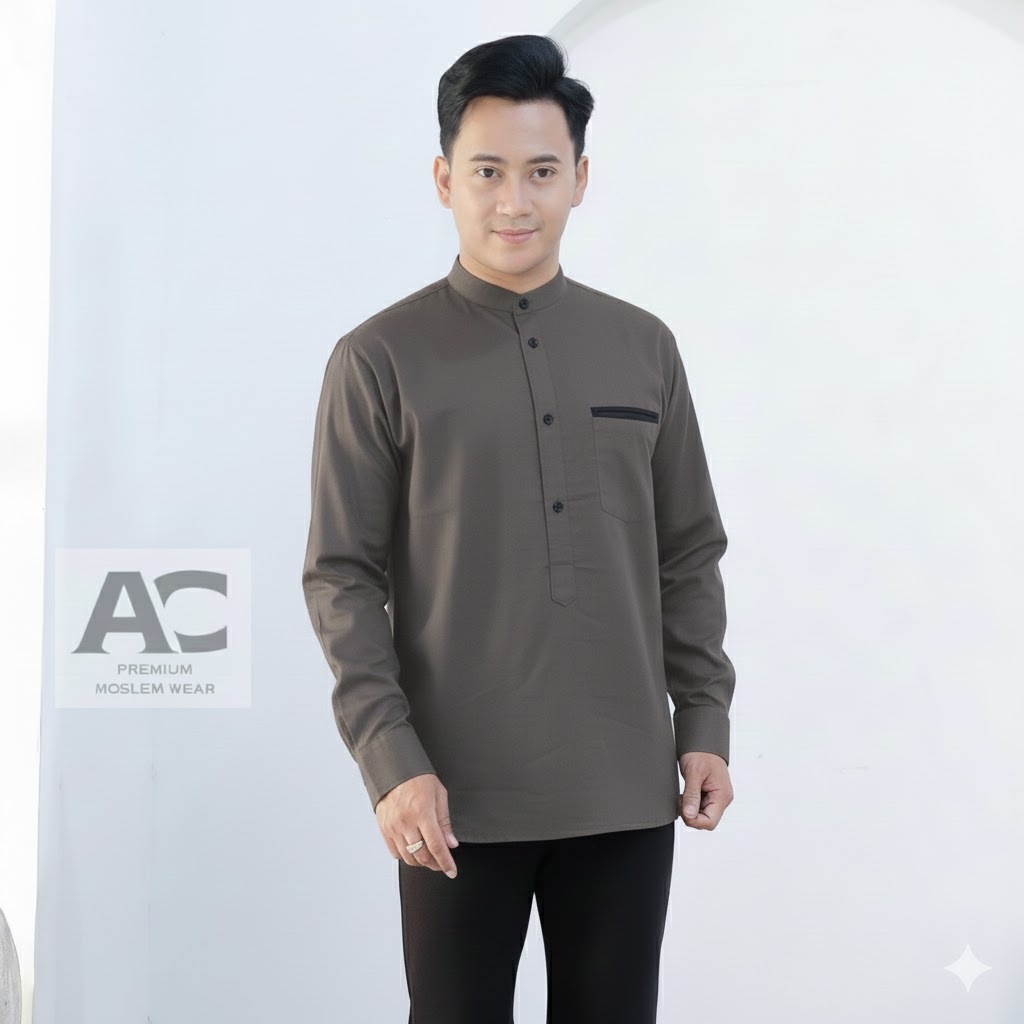 Baju Koko Pria Dewasa Lengan Panjang,Model Kurta Katun Ciggaret Premium