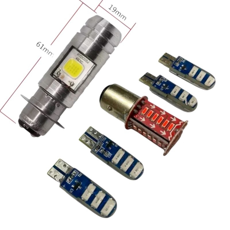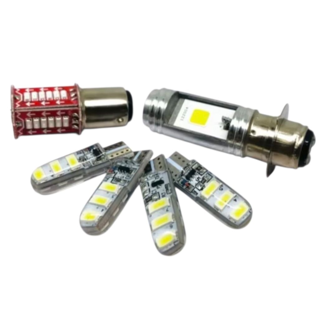 Paket 6 in 1 lampu Led utama H6 2sisi + 4sen jelly T10 kedip flash + stoplamp belakang 30mata DC 12volt lampu motor meti