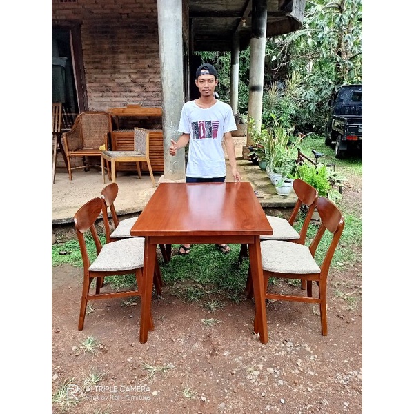 TERMURAH SET MEJA MAKAN CAFE TEBAL 3cm 4 KURSI ROPAN KAYU JATI ASLI JEPARA