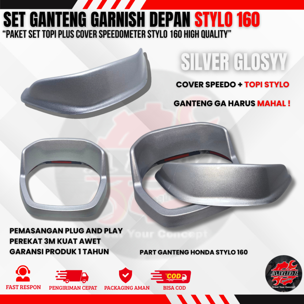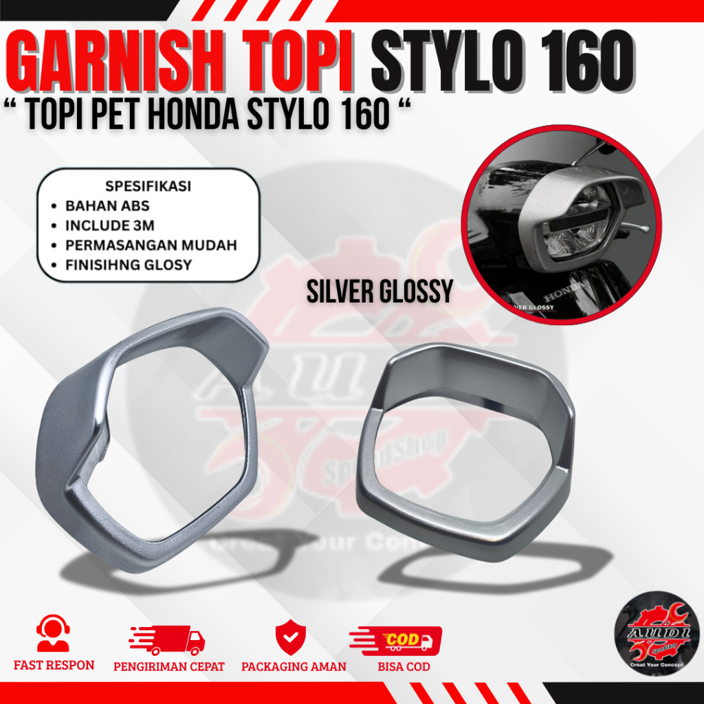 COVER TOPI STYLO 160 SILVER GLOSSY GARNISH TOPI PET HONDA STYLO 160 SUKU CADANG ORI STYLO PNP