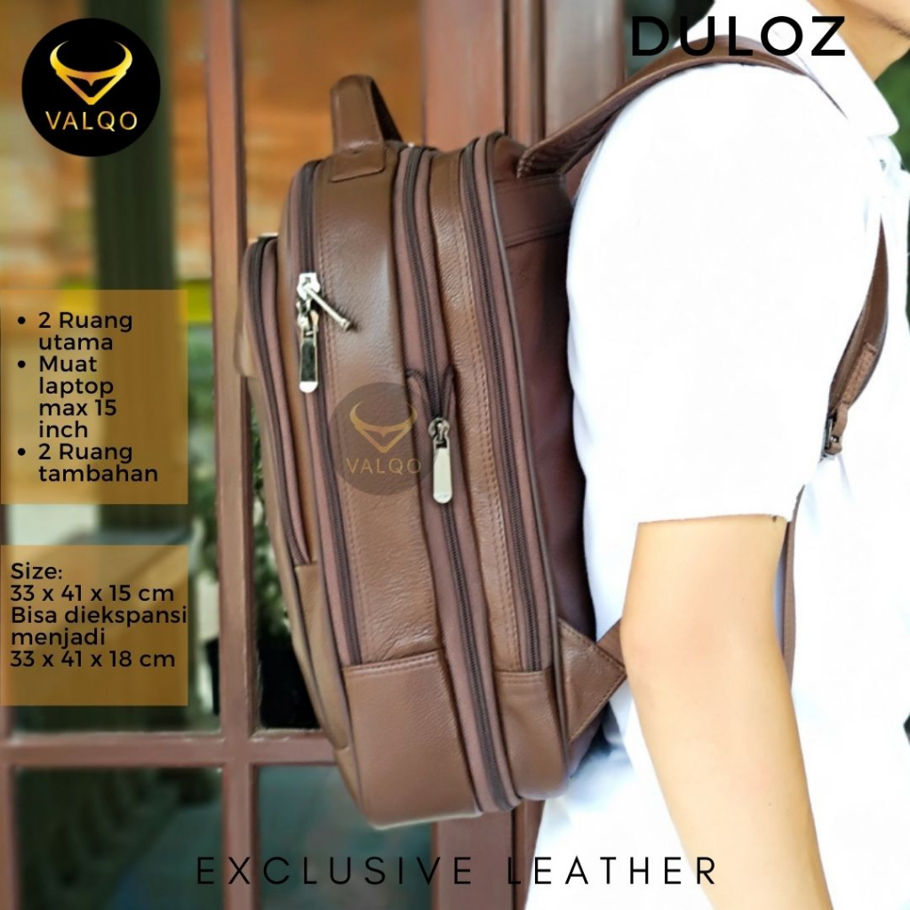 Valqo Duloz Tas Ransel Kulit Sapi Tas Punggung Rangsel Laptop Kerja Backpack Pria Wanita