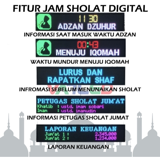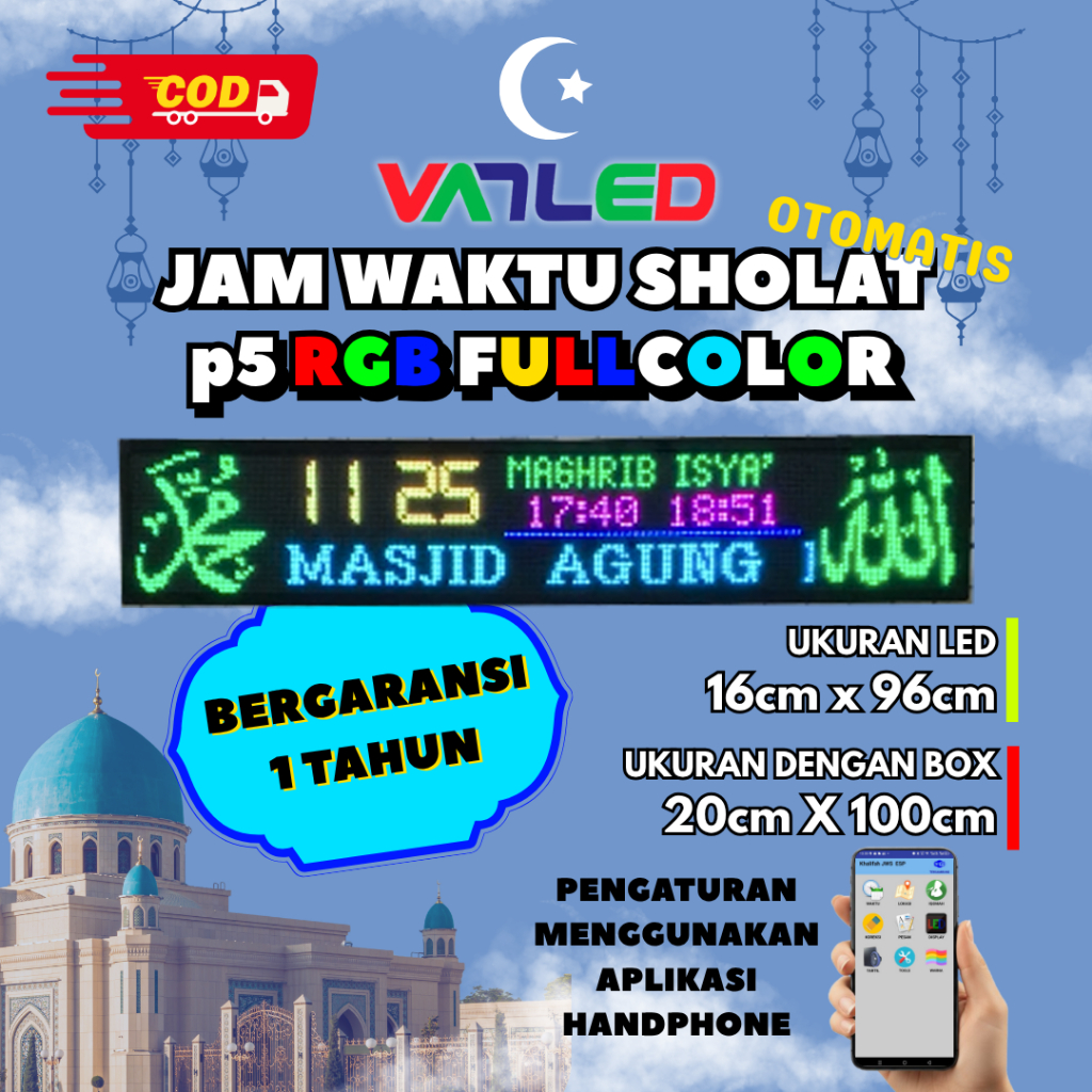 Jam Sholat Masjid Running Text JWS Jadwal Sholat Solat Digital Masjid Running Text JWS P5 Rgb Full Color Ukuran 16x96 Pixel 20x100 Cm