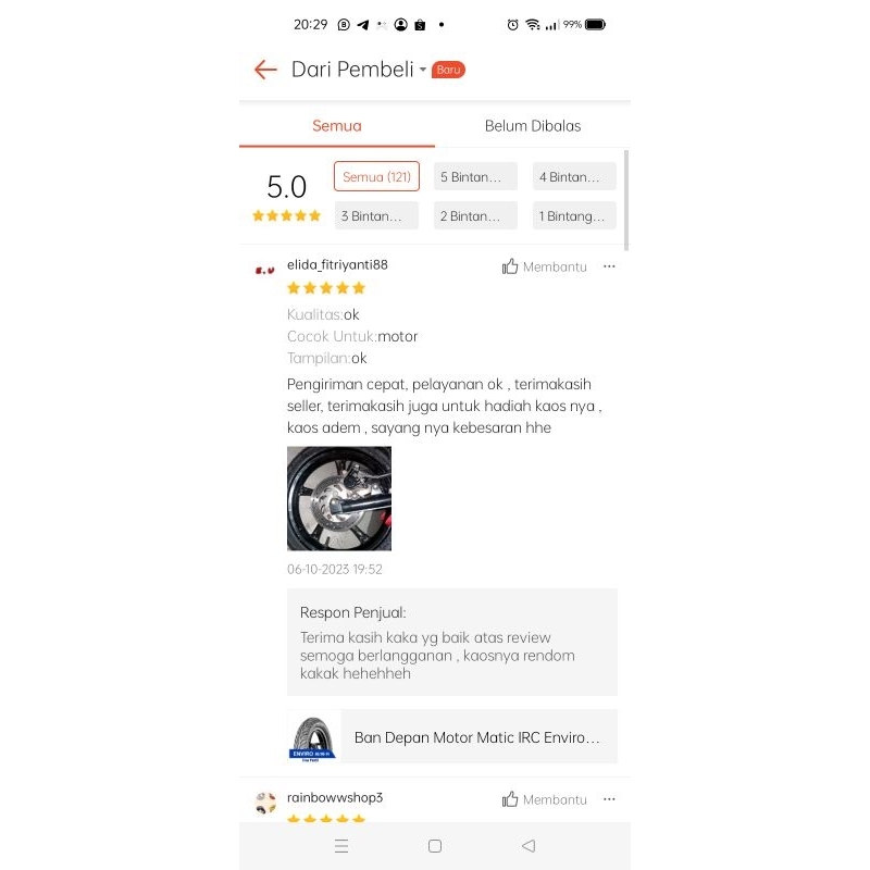 Ban Depan Motor Matic IRC Enviro 80 90 Ring 14 Tubeless Free Pentil Tahun 2025