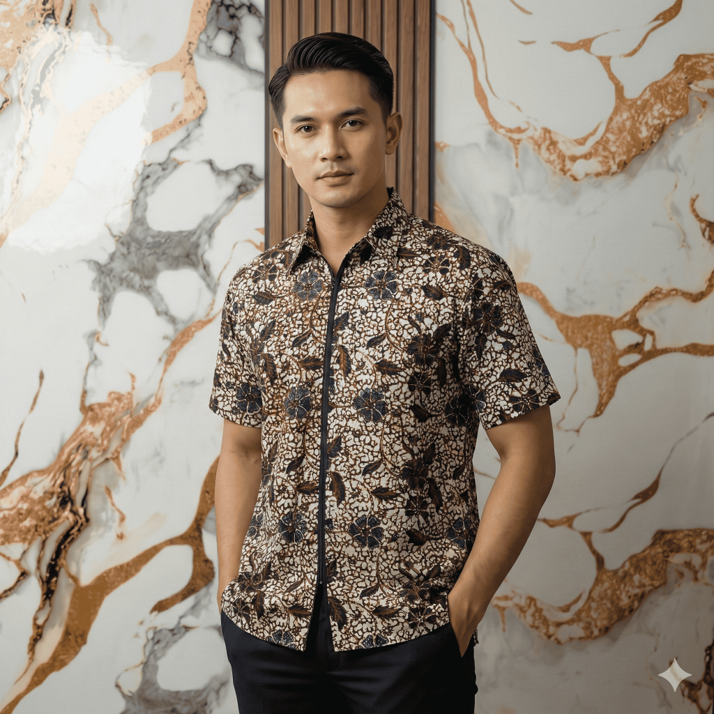 Kemeja Batik Long Sogan Baju Batik Pria Motif Modern Lengan Pendek Slim Fit Premium