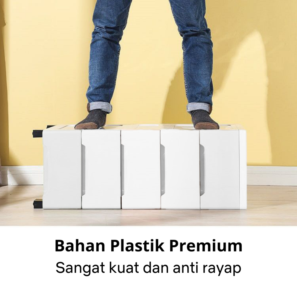Goodbaby | Lemari pakaian plastik tertutup susun | Lemari plastik putih polos multifungsi | Lemari pakaian plastik premium Lemari Pakaian Anak