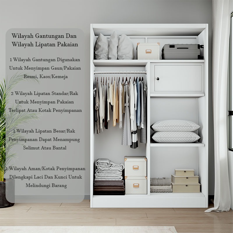 Lemari Baja 120cm 2 Pintu, Pintu Geser, Tiang Gantungan, Brankas, Berbagai Desain Pilihan