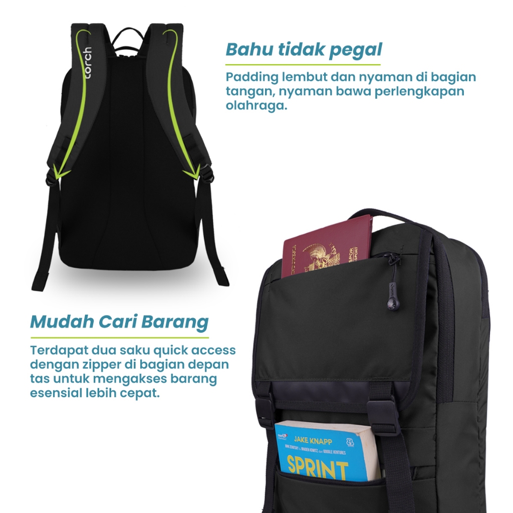 Torch Solana Tas Totebag Ransel Punggung Sekolah Kerja Jinjing Laptop Pria Wanita Tahan Air 19 Liter - Backpack Water Re