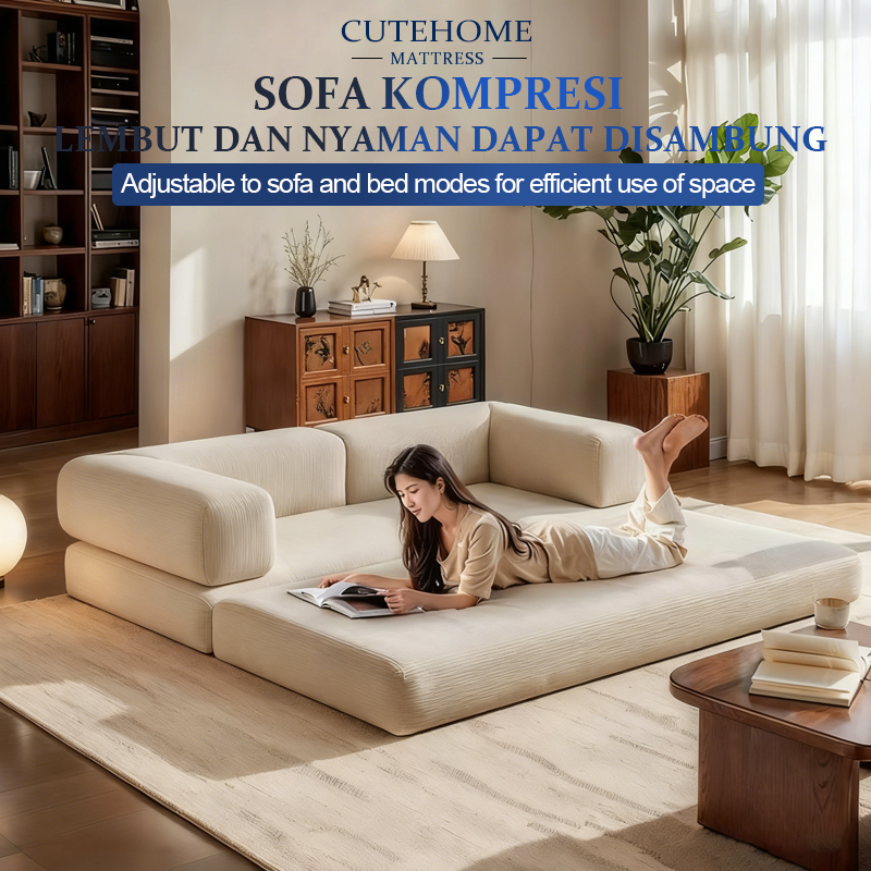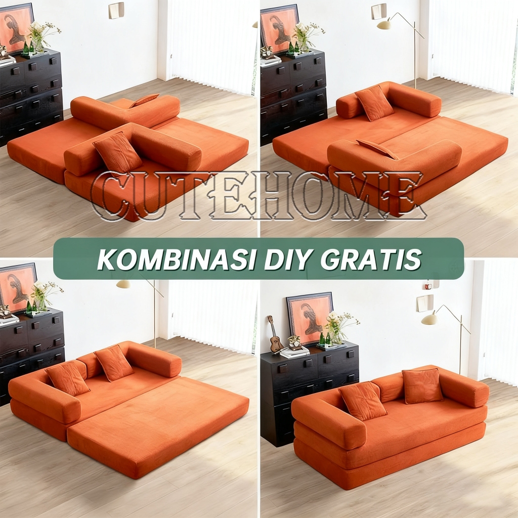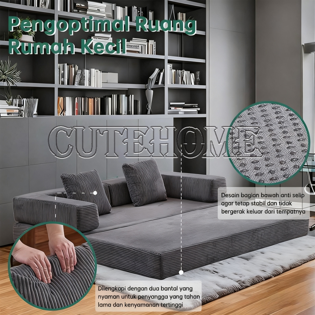 CUTEHOME Ruang Tamu Dua-Dalam-Satu Sofa Lipat Multifungsi Dan Tempat Tidur Gaya Modern Sederhana Sofa Ganda Praktis