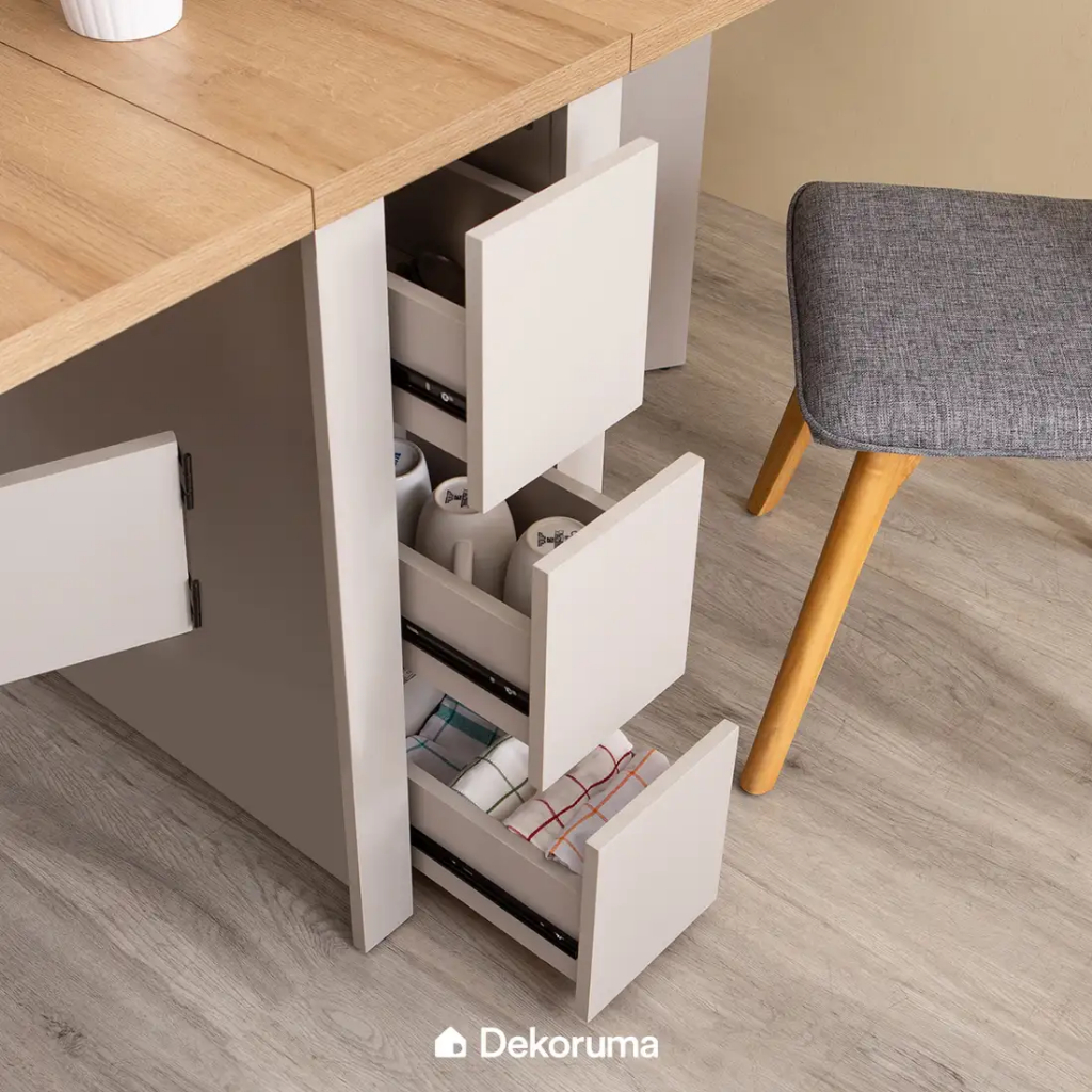 Dekoruma Yver Meja Makan Kayu Lipat Minimalis Multifungsi dengan Laci Serbaguna | Dining