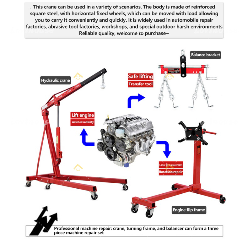 Heavy Duty Hydraulic Engine Crane 2 TON 2T Jack Engine Crane Engine Jack Foldable Engine Crane Repair Car blv