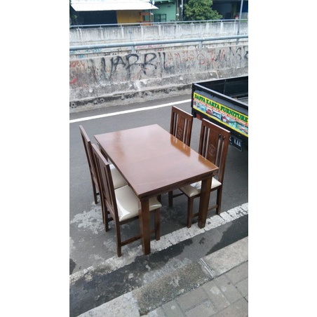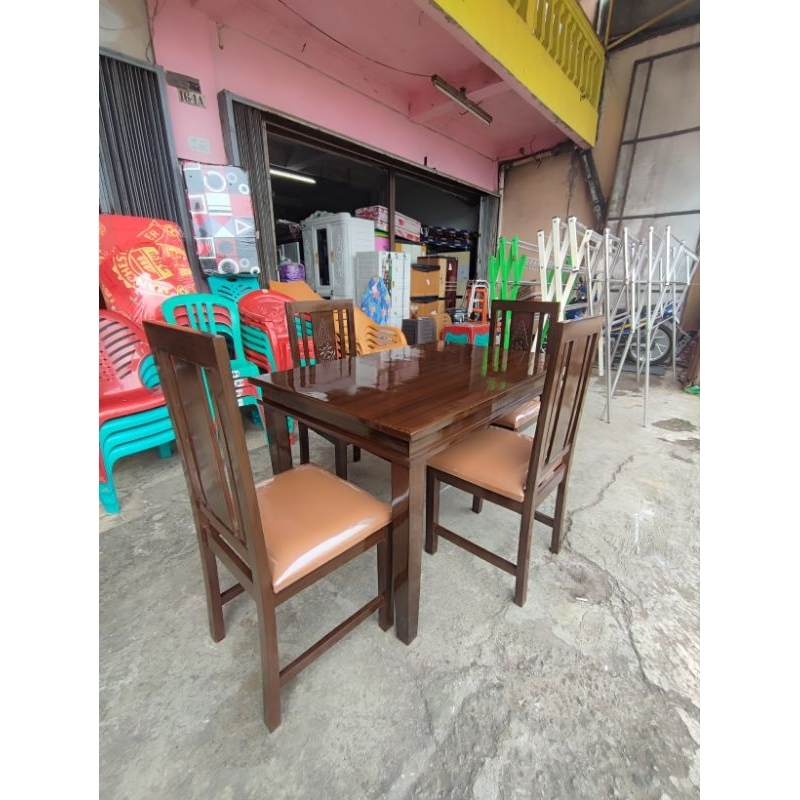 meja makan minimalis kayu mahoni 1 set 4 kursi tebal dan rapi
