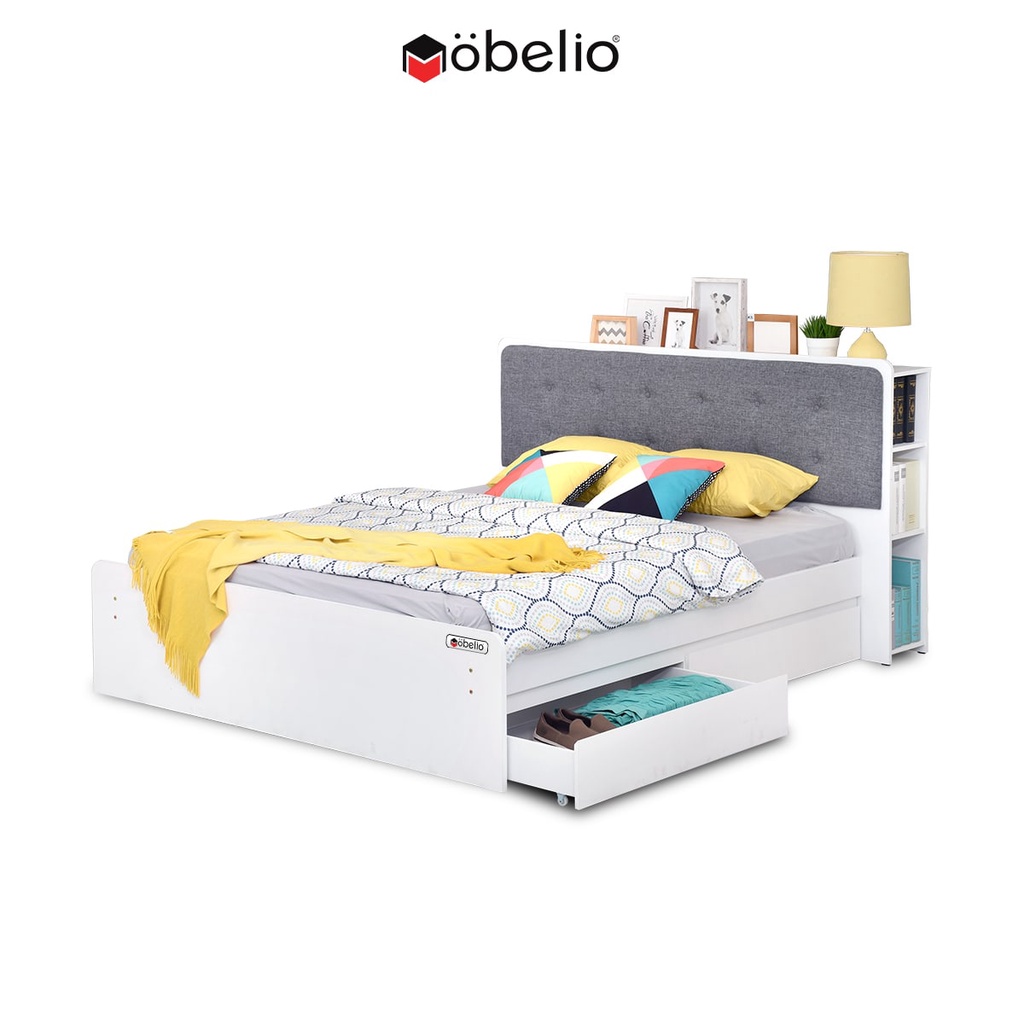 MOBELIO - Ranjang DIVAN Tempat Tidur 160 x 200 plus 2 Laci dan Rak Minimalis Putih - Eclipse