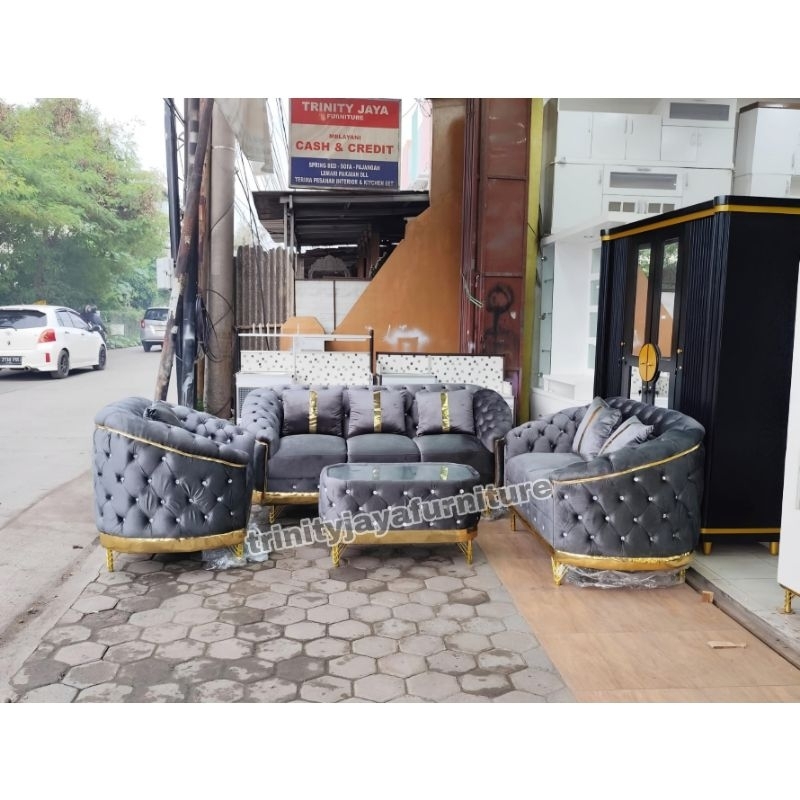 Sofa Tamu 321 Plus Meja Sofa Turki Bahan Bludru/trinityjayafurniture