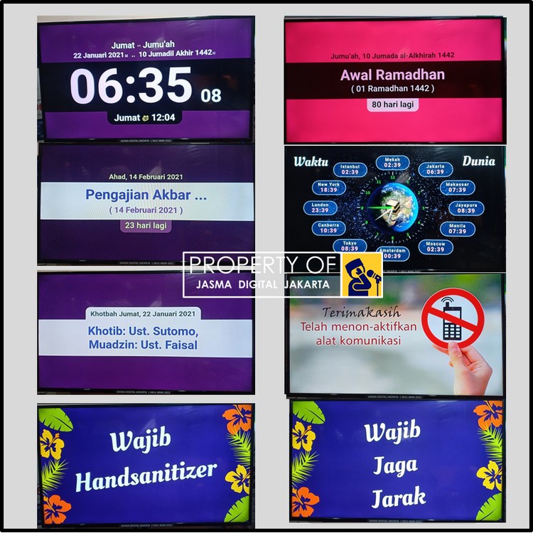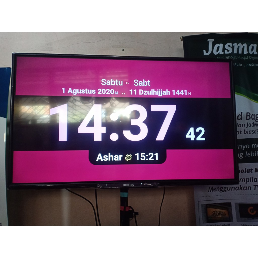 Jasma Versi Pro Jam Waktu Sholat TV LED Untuk Masjid dan MushollaTanpa Internet Canggih dan Modern