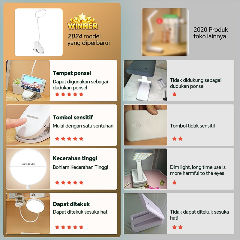 Lampu Meja Lampu Belajar Jepit USB LED Portable Charge Touch Screen Adjustable 7000K