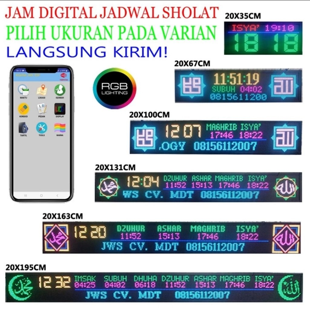 Jam Masjid Digital Jadwal Waktu Sholat Jws Tinggal Pasang TYPE P5RGB LAPADZ - 1 BARIS