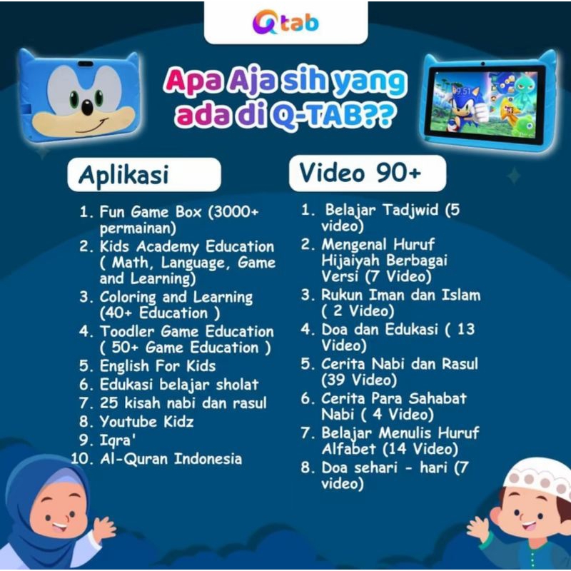 Q-Tab Al-Akram Quran Tablet Anak Edukasi Islami Pembelajaran Game Kids Qur'An Tab Bergaransi 1 Tahun