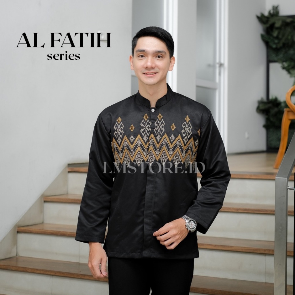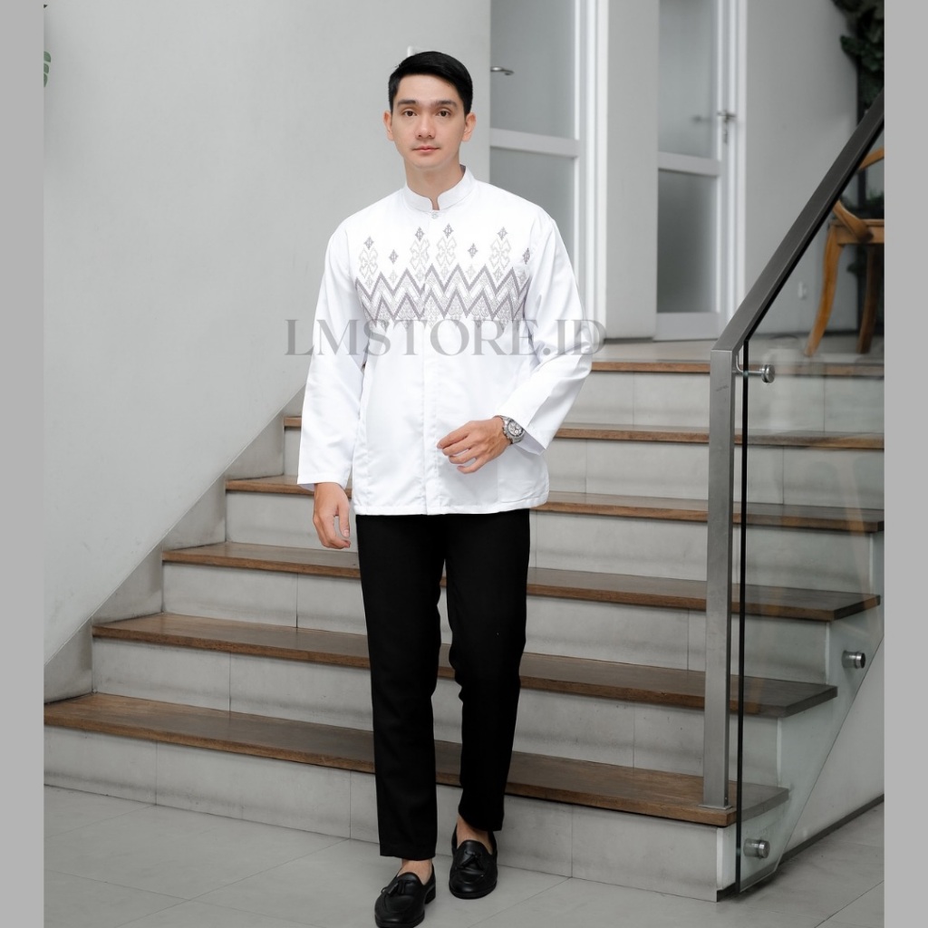 Baju Koko Pria Lengan Panjang Bordir Motif Toyobo Grade A Premium Warna Putih Hitam Abu Coksu Tebal Berkualitas