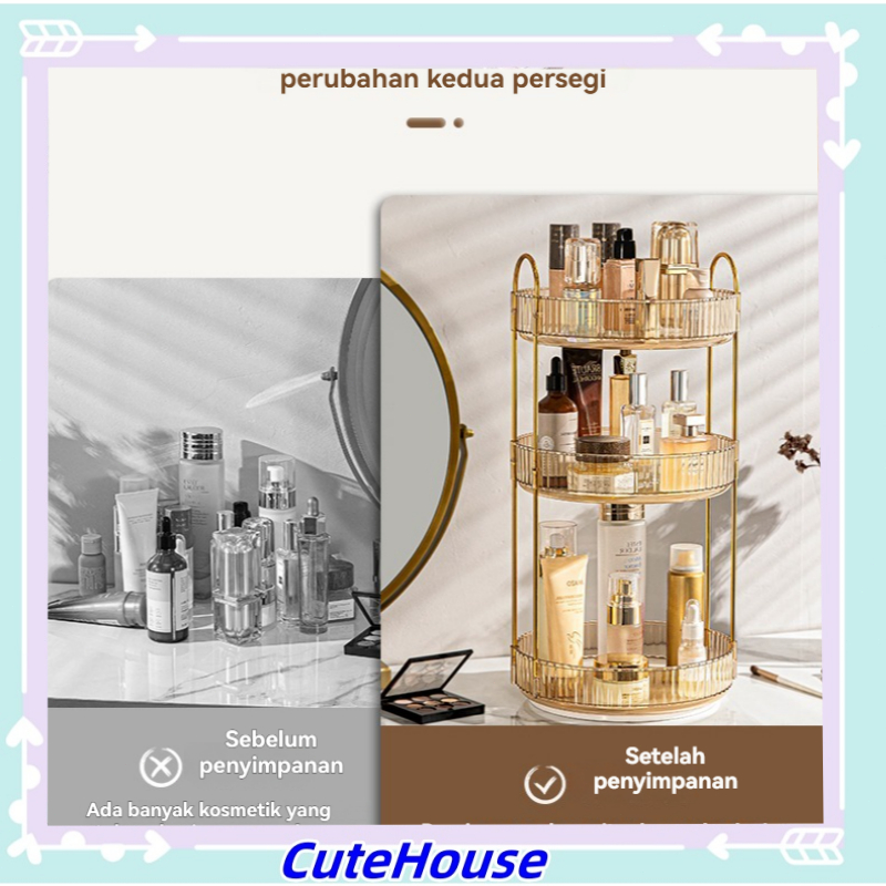 Rak Gold / Rak Dapur/Rak Makeup Gold / Rak Bumbu / Rak Dapur/ Rak Putar / Sea Lazy Rak Rotating 360" makeup Organizers Perfume Organizer Spinnin