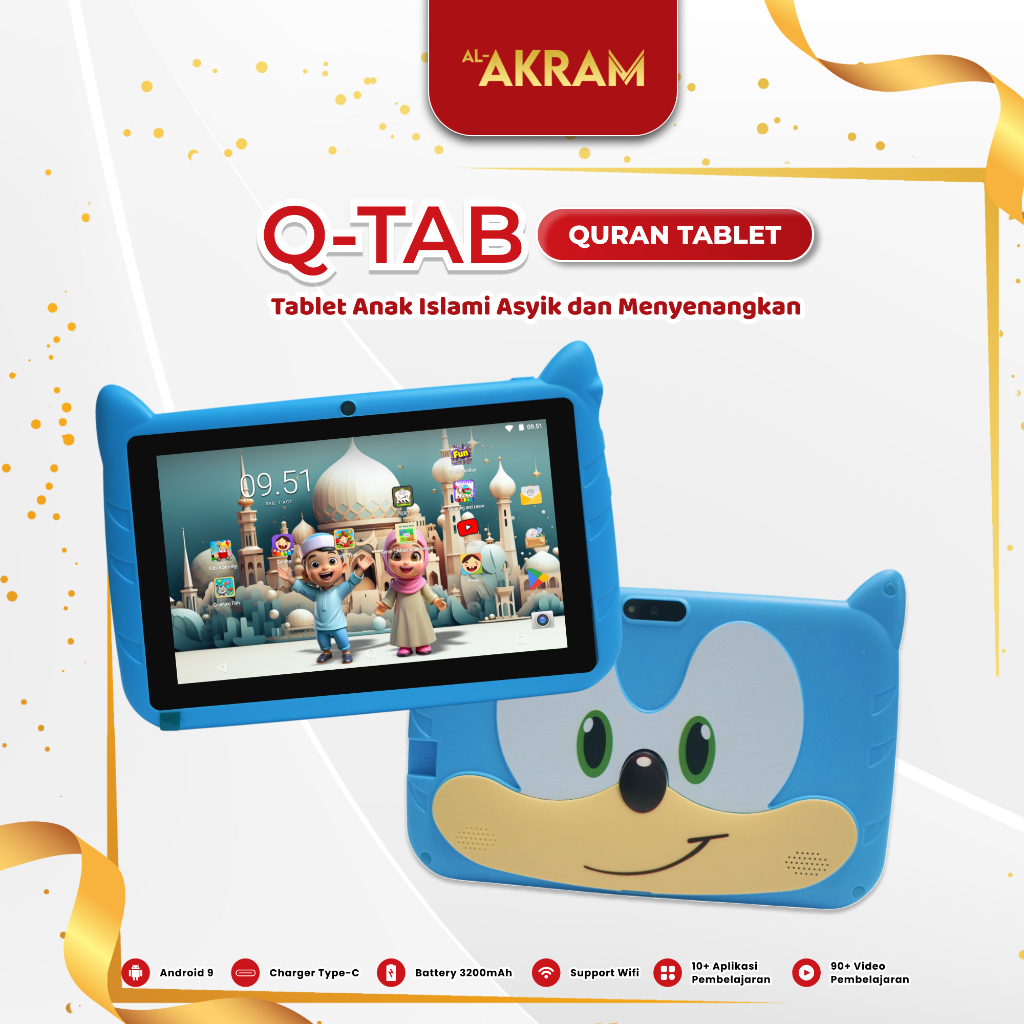 Garansi Resmi (Q-Tab) Quran Tablet Android Anak Belajar 3-11 Tahun Kapasitas 4/64Gb