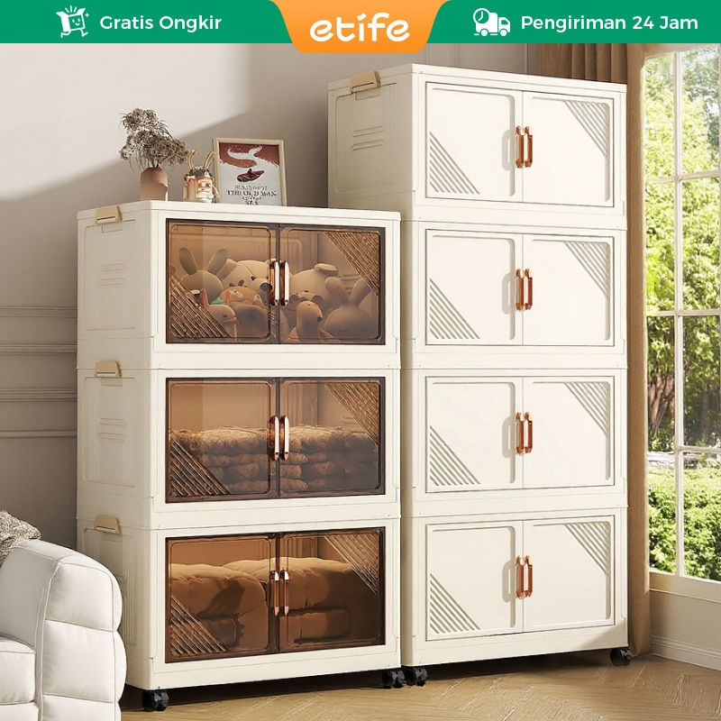 E-TIFE Lemari Plastik Susun Lemari Pakaian Aesthetic Lemari Serbaguna Multifungsi Lemari Lipat
