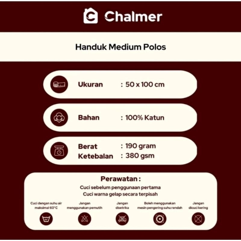 handuk chalmer katun 50 cm x 100 cm handuk traveling - classic color.