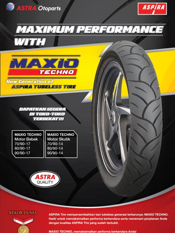 BAN MOTOR ASPIRA MAXIO TECHNO TUBELESS 70/90-14,80/90-14,90/90-14, 70/90-17,80/90-17,&90/90-17 ACCESSORIES MESIN MOTORCYCLE BAN MOTOR MATIC ANTI BOCOR SPORTY - 70/90-14