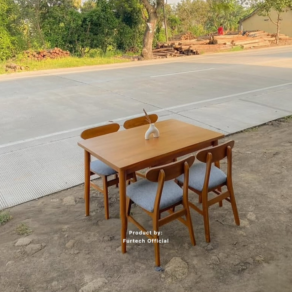 Set Meja Makan Cafe Kayu Jati Solid 4 Kursi | Minimalis Retro Natural Estetik