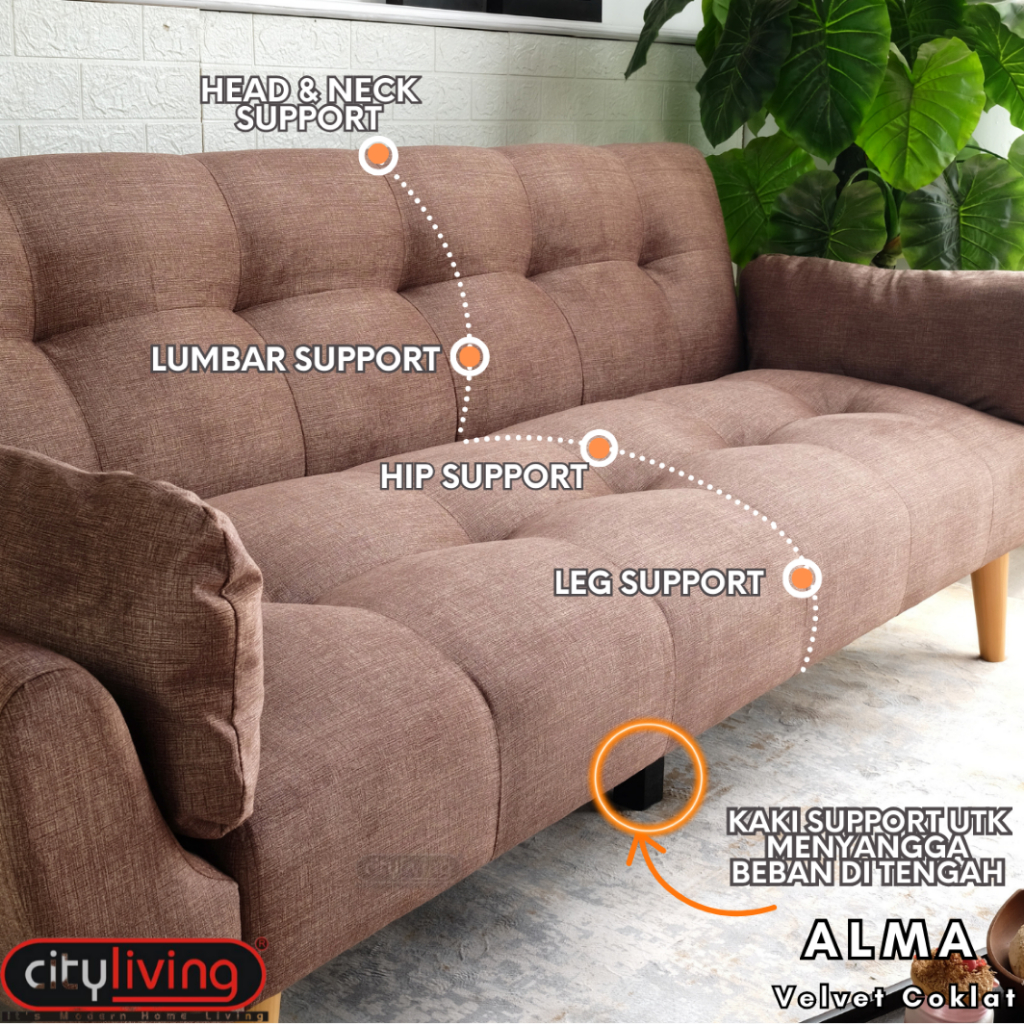City Living Alma sofabed 3 dudukan sofa2in1 Tempat Duduk Multifungsi Sofa Tidur 2In1 Kursi Santai Serbaguna