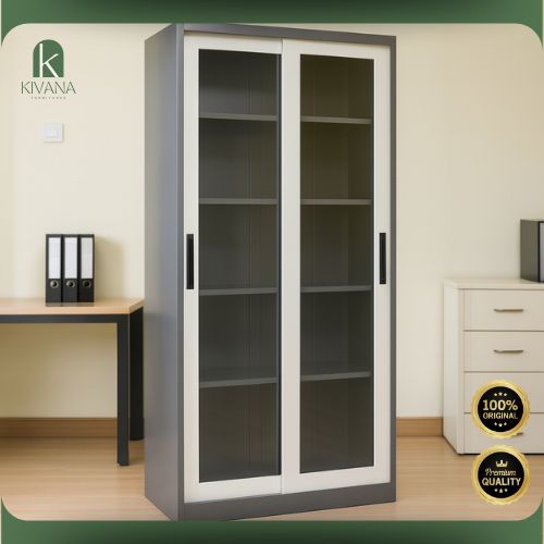 [KIVANA] Lemari Kabinet Sliding Kaca/ Pintu Kaca Dokumen Buku Multifungsi